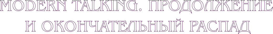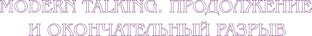хиты Modern Talking. Дуэт распался во второй раз в 2003 году, на этот раз окончательно. Хотя никогда нельзя сказать наверняка. Зная умение артиста интриговать публику и преподносить абсолютно неожиданные сюрпризы, нельзя исключить, что музыканты вновь объединятся для совместного творчества.